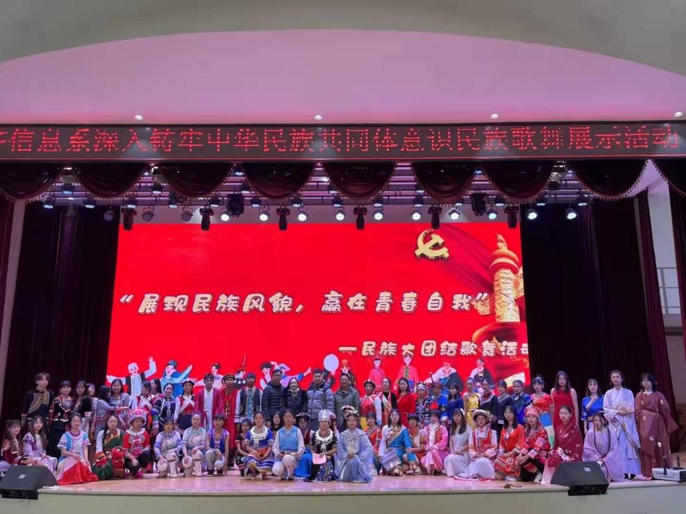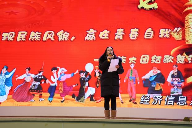 为深入贯彻中央民族工作会议,全国民族团结进步表彰大会精神,铸牢中华民族共同体意识,促进各民族共同团结进步、共同繁荣发展。2021年11月24日下午,经济信息系直属党支部举办以“展现民族风貌,赢在青春自我”为主题的“民族大团结歌舞活动”活动。出席本次活动的领导和嘉宾有:学院党委副书记石红同志、学院纪委书记刘亚彬同志、经济信息系直属党支部书记兼系主任高翠同志、副书记王小川同志、副主任李万隆同志、学院宣传部和丹清同志、统战部朱燕刚同志、艺术系团总支书记杨崇方同志、特教系团总支书记史洋同志以及经济信息系全体师生。