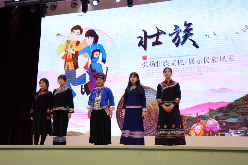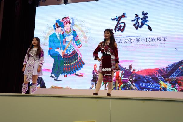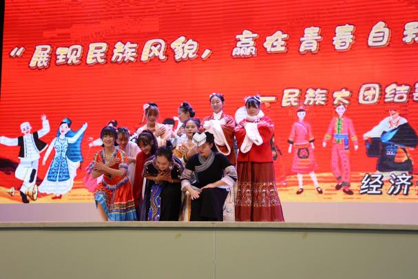 之后相继演绎独唱,维吾尔族、傣族、藏族等少数民族歌舞等节目,以及每个朝代的特色汉服走秀,身着不同民族服饰的同学们聚在一起起舞,象征着各民族团结一致,同心同德。活动最后在《爱我中华》的歌声中落下帷幕,唱出了中华儿女强烈的民族自豪感和荣誉感,把整场活动推向了高潮,点燃了现场师生的爱国豪情和报国之志。节目民族特色鲜明、表现形式多样、时代气息浓厚,精彩纷呈,丰富多姿的文艺汇演博得了在场观众阵阵掌声和喝彩,把中华民族一家亲的情感深深传递到了师生的心中。