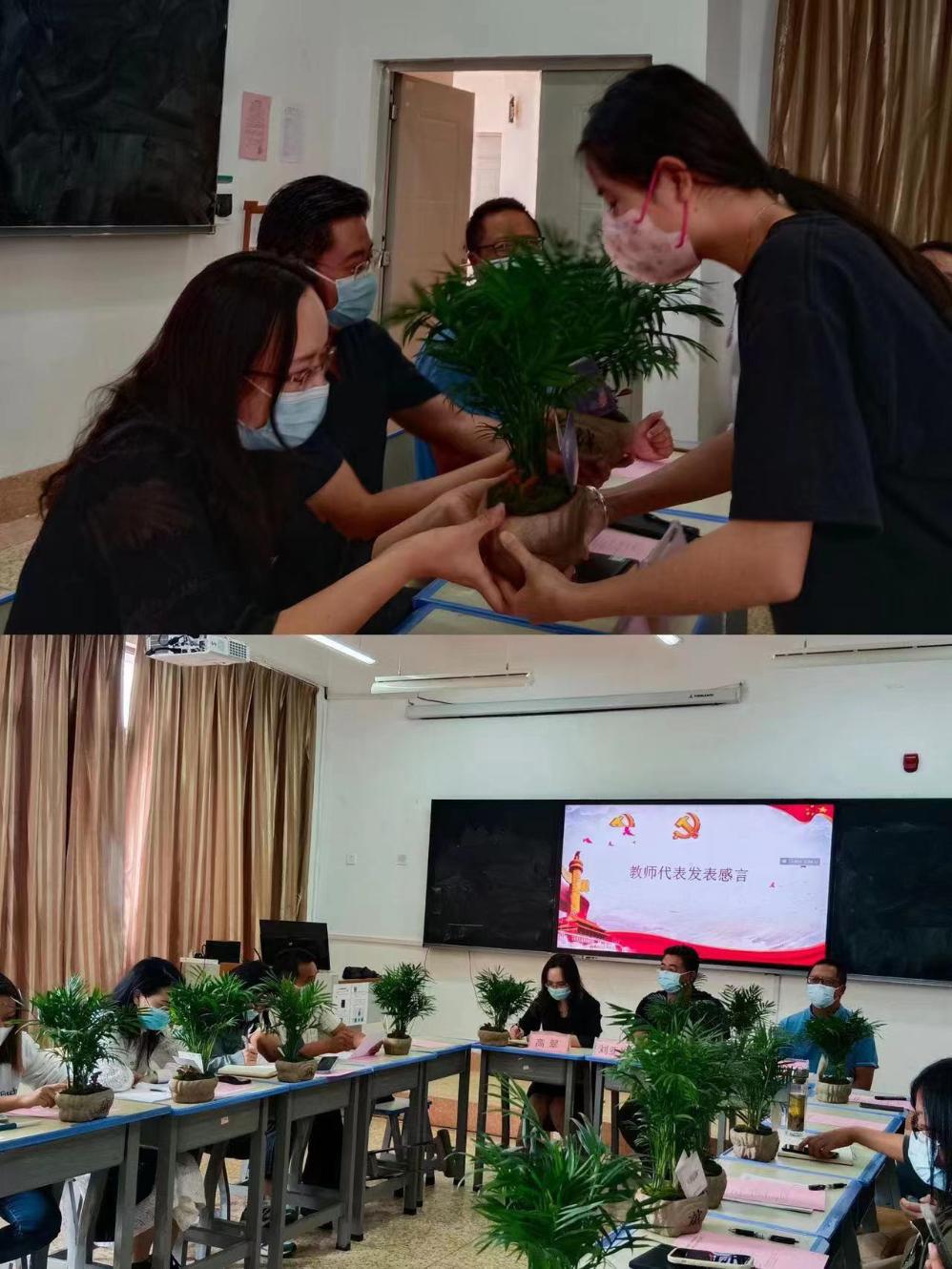 在每一个人的生命历程中,老师,都是最值得尊重和感恩的人。入党积极分子们用绿植表达对老师们的深深敬意。在温暖的问候声中,教师代表黄继云给我们带来了真挚感人的发言,他说,1997年来到学校就读计算机应用专业,由于品学兼优,毕业后留校工作,对身体残疾的他,这份工作来之不易。他感谢党和政府,以及学校领导的关爱和关怀,才取得了今天的成绩。我们常唱没有共产党就没有新中国,他感激地说:没有华夏中专,没有特教学院,也就没有他的今天。辅导员代表李娴给我们讲述了在她从事辅导员工作1年半以来的心酸和感动,其中最重要的就是能够陪伴学生,和学生一起成长,她说庆幸加入特职院的大家庭。