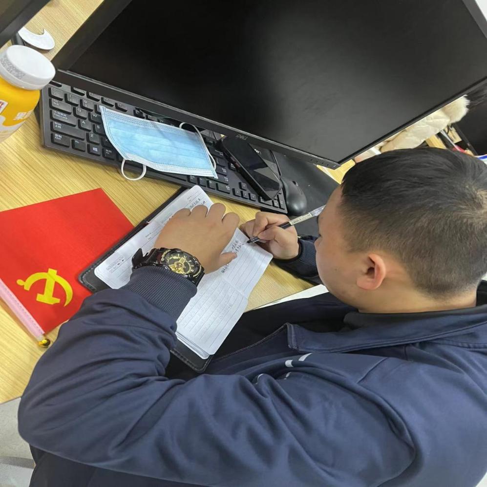 图为退役复学郭勇记录会议内容图