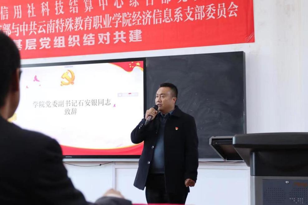 在活动上,石安银对关心和支持职业教育工作、残疾人工作的云南省农村信用社表示衷心地感谢,并表示希望双方借助结对共建的合作机遇,找准党建工作共同点、开展活动切入点,不断拓展合作的广度和深度,按照“资源共享、队伍共建、服务联动”原则,大力组织开展内容丰富、形式多样的活动,实现“组织建设互促、党员干部互动、党建载体互融、校企携手共赢”的总体目标。