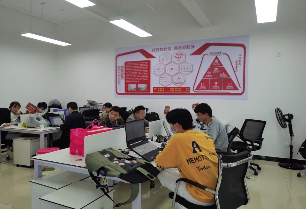 图为用友企业办公室内工作状态