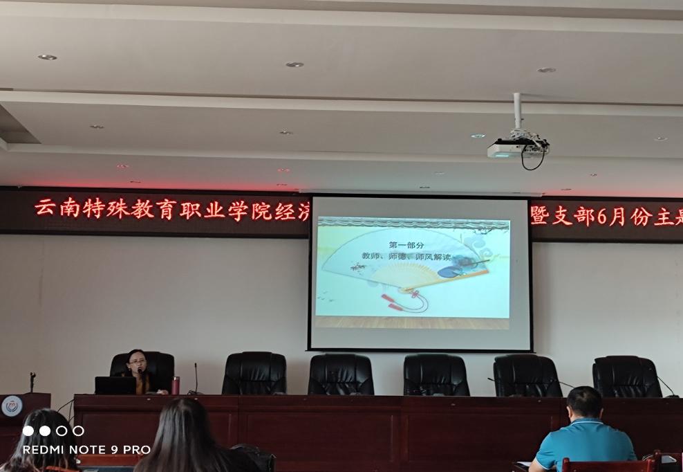 为全面贯彻党的指导方针,强化以党史学习教育为重点的“四史”学习教育,响应学院对教职工爱岗敬业、无私奉献的号召,提高我系教师政治素质和道德水平,调动我系教师教书育人的积极性,提高教学质量。根据《教育部关于在教育系统开展师德专题教育的通知》(教师函【2021】3 号)、《星空游戏app推荐免费师德专题教育工作实施方案》和《经济信息系师德专题教育工作实施方案》,经济信息系6月16日12:40在学院大会议室召开了师德专题教育暨支部6月份主题党日活动,全系教师参加了此次活动。