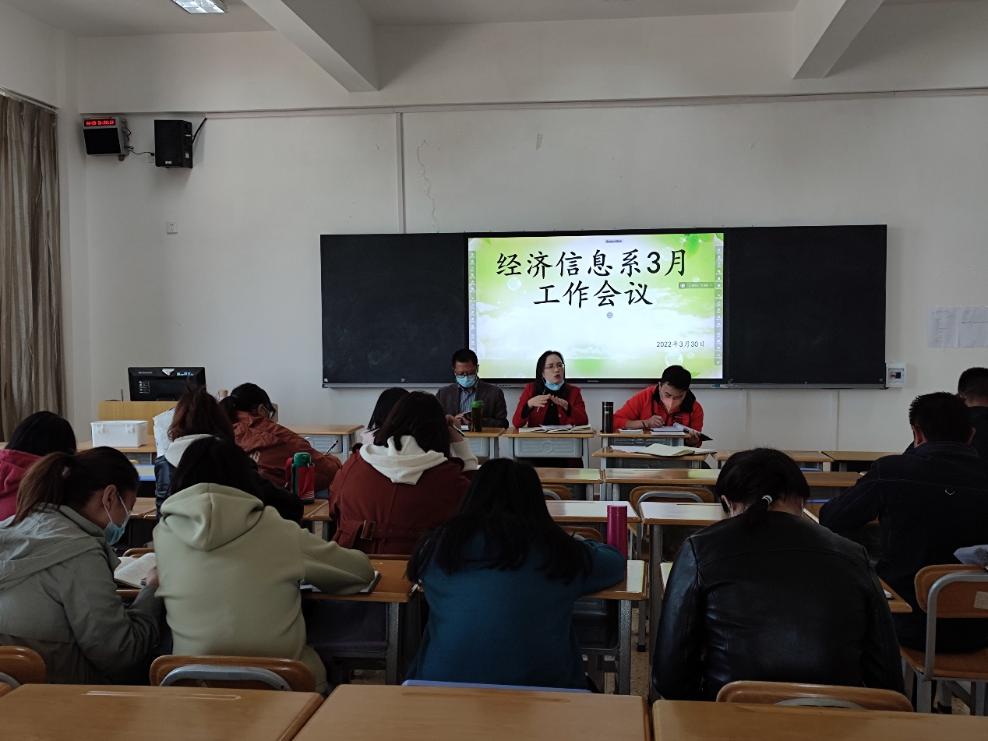 3月30日经济信息召开了3月工作会议,并对《云南省推进作风革命加强机关效能建设的若干规定(试行)》、省委教育工委、省教育厅2022年全省教育系统党风廉政建设工作会暨推进作风革命效能革命动员部署会和星空游戏app推荐免费2022年党风廉政建设工作会暨推进作风革命效能革命动员部署会精神进行学习研讨。全系教师参加了此次会议,教学秘书王艳娥主持会议。此次会议共三项议程。