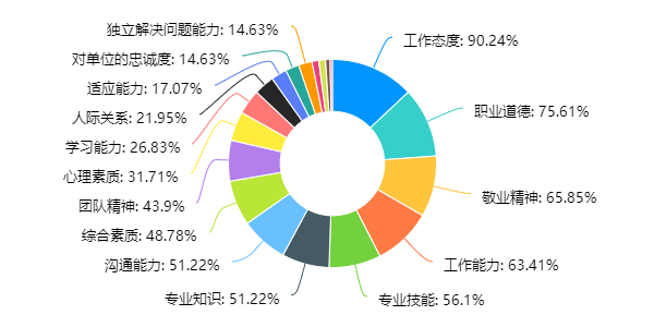 对于用人单位挑选毕业生时候最重视的能力前五项分别是:工作态度、职业道德、敬业精神、专业知识和沟通能力。