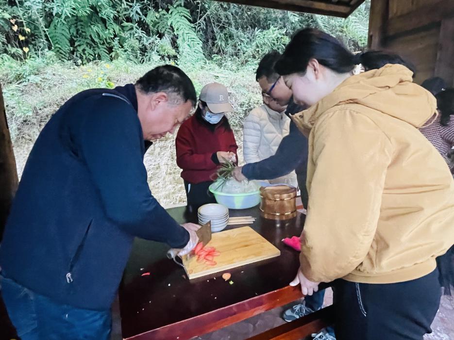 培训期间,学员们到达水田会议会址“花房子”,鸡鸣三省地标、大河滩庄子上会议旧址、红军途径的天险————“两合岩”进行实地参观。通过重走长征路、体验打糍粑、制作红军餐等形式,深深体会到当年红军长征的艰苦、革命斗争的艰难与残酷,进一步深刻认识到扎西会议在中国共产党史上的重要意义和重大贡献。在石安银副书记的带领下大家一起重温了入党誓词,向革命烈士敬献花圈,瞻仰红军烈士纪念碑。