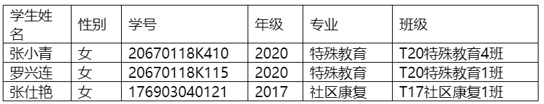 依据学生所属学院审查、教务处复核、校长办公会审议,决定给予张小青、罗兴连、张仕艳同学退学处理。