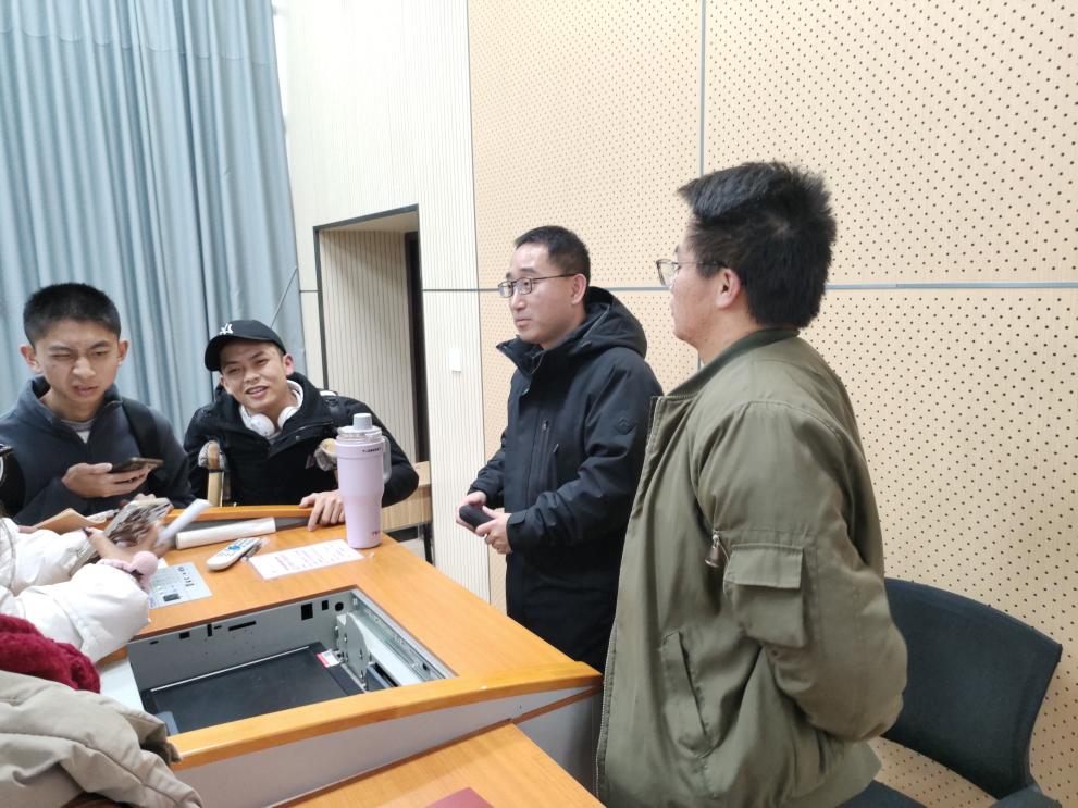 图为郜老师为同学解答大赛相关问题