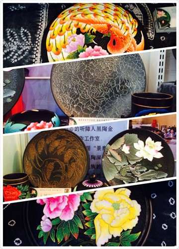 图为参展的黑陶工艺品(听障学生制作)