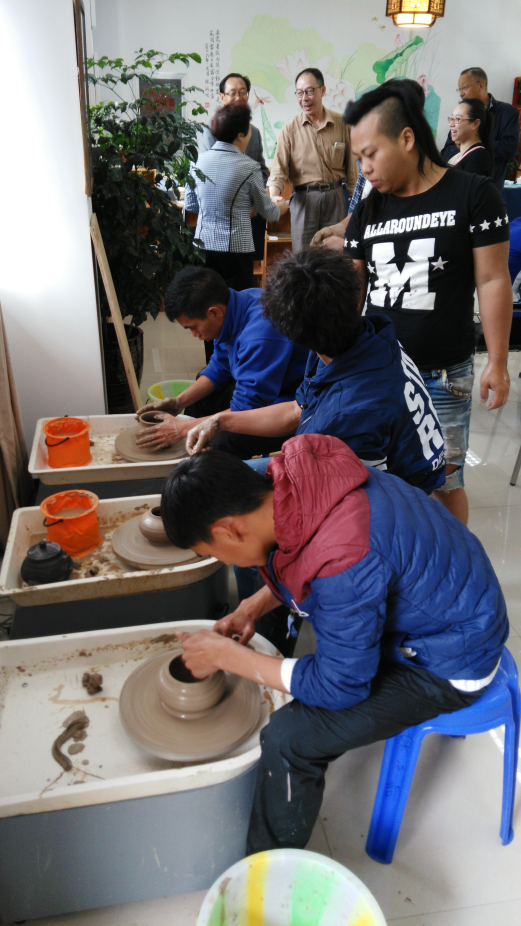 活动过程中,在孙继先校长的陪同下省委宣传部赵金部长,省残联王兴宁理事长,省就业服务局高正灿局长等一行来到“夏玹彩居”工作室,慰问了正在学习陶艺制作的听障学生,了解陶艺制作的工序和要领,并饶有兴趣的参观了我校残障学生的工艺作品,孙继先校长及时给各位领导介绍了我校残障学生的学习生活情况和招生就业情况。最后各位领导鼓励学生们努力学习,将来成为一个对社会有用的人,和全省人民一道奔小康。