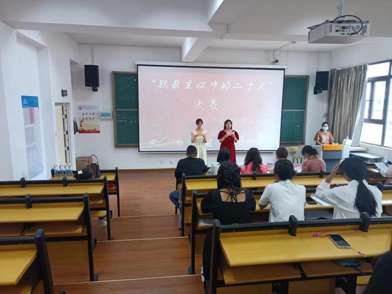 为深入学习贯彻党的二十大精神,不断深化师生对“两个确立”的决定性意义的认识,不断丰富学习贯彻习近平新时代中国特色社会主义思想主题教育的内容和形式,全面推进习近平新时代中国特色社会主义思想“三进”工作深入开展,教育引导学生坚定不移听党话、跟党走,树立技能成才、强国有我的奋斗理想,6月9日,由马克思主义学院主办、演讲与口才社承办的“学习二十大 青春向未来”主题演讲比赛决赛在玉璋楼309教室开展。