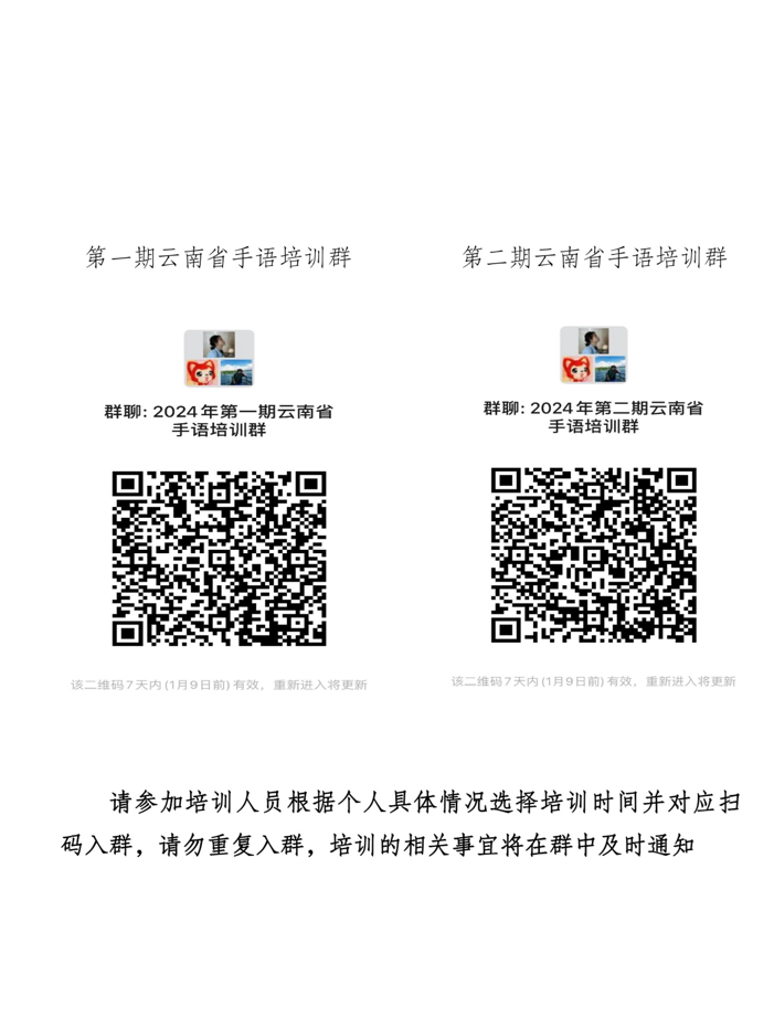注:个人报名填写云南省《国家通用手语》培训班参训人员报名表确认无误直接上传至相对应的微信群即可,请勿重复上传报名表。