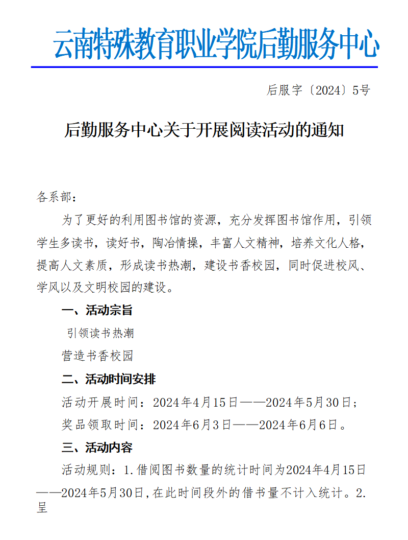后勤服务中心关于开展阅读活动的通知