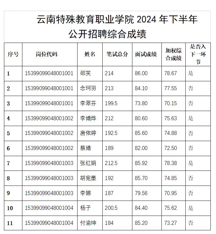 根据《云南省事业单位公开招聘工作人员办法》(云人社发〔2016〕182号)和《星空游戏app推荐免费2024年公开招聘工作人员公告》有关规定,经笔试、面试,现将综合成绩公示如下: