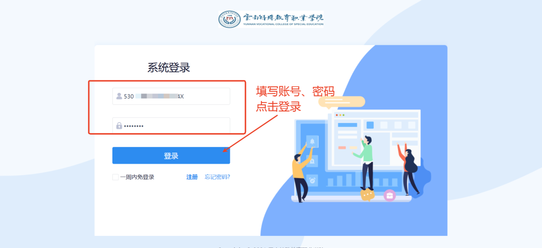 点击确定,使用身份证号作为账号,注册时填写的密码登录系统,如下图: