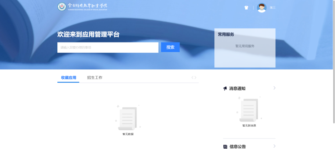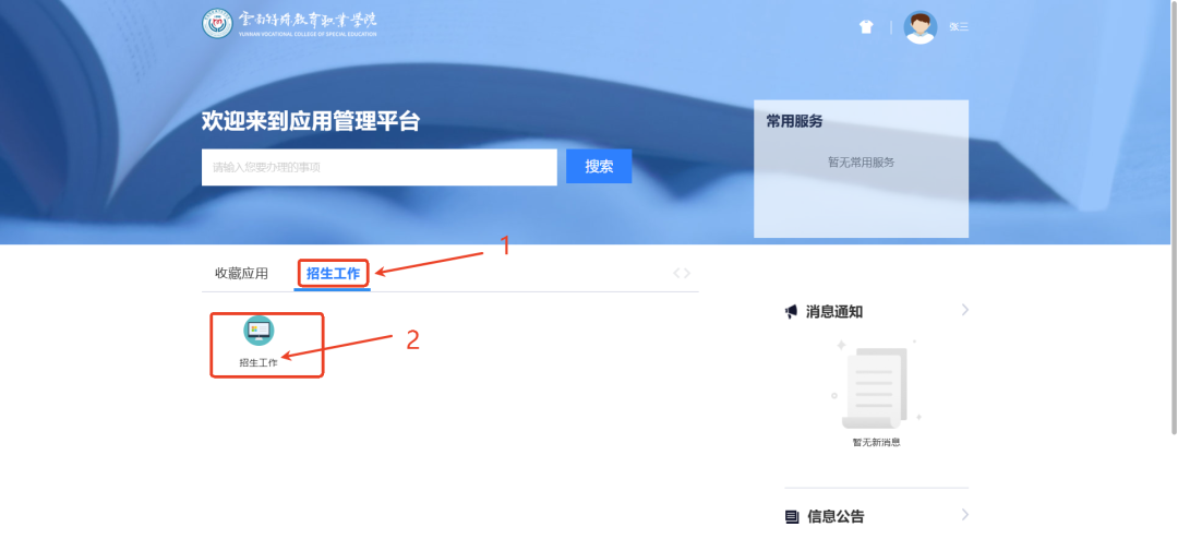 注意:若此页面未显示招生工作菜单,请稍等5-10分钟,系统数据正在同步。