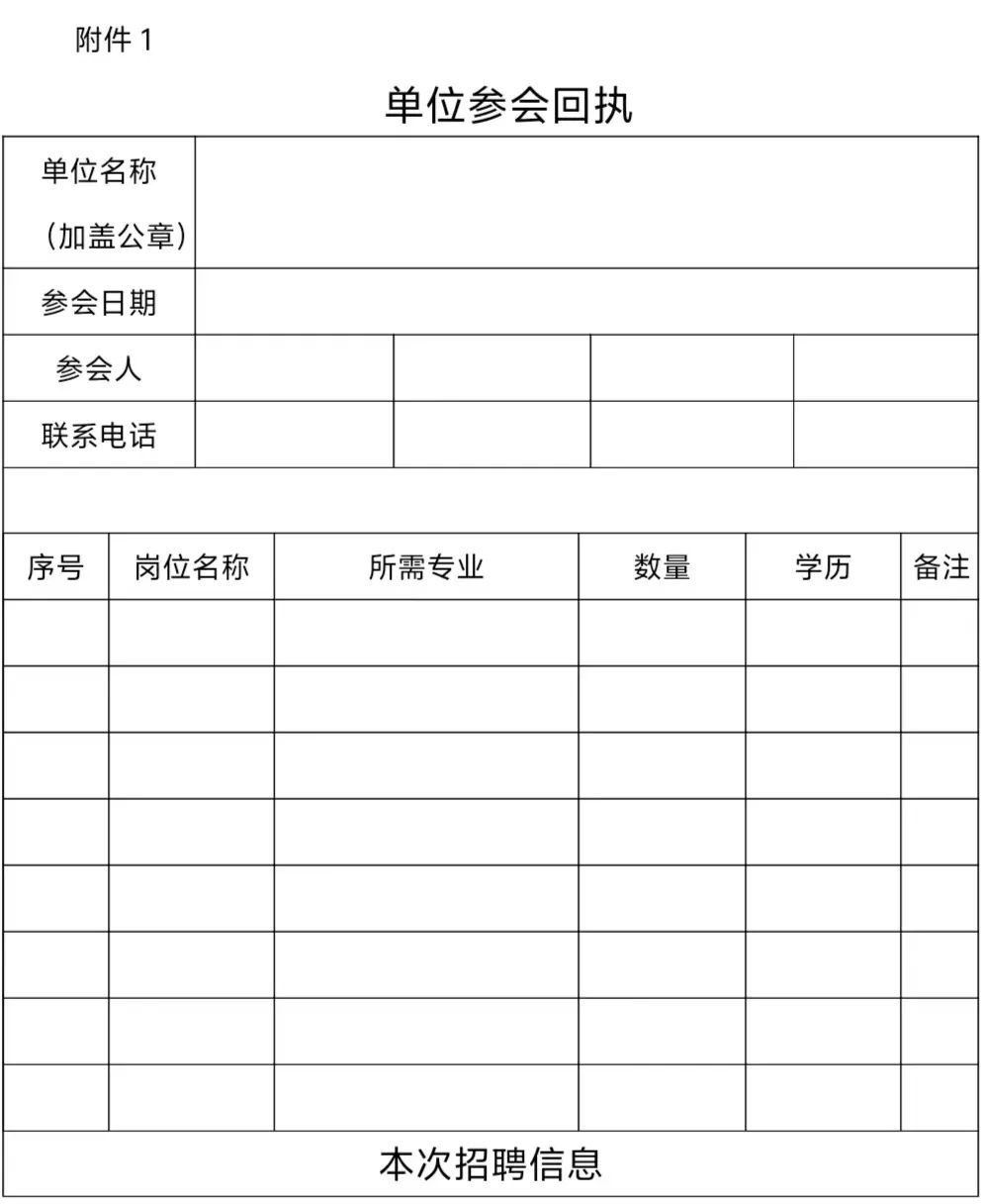 本回执填写盖章后一份发送学校邮箱(3月23日17:00以前);一份于招聘会当天入校使用。