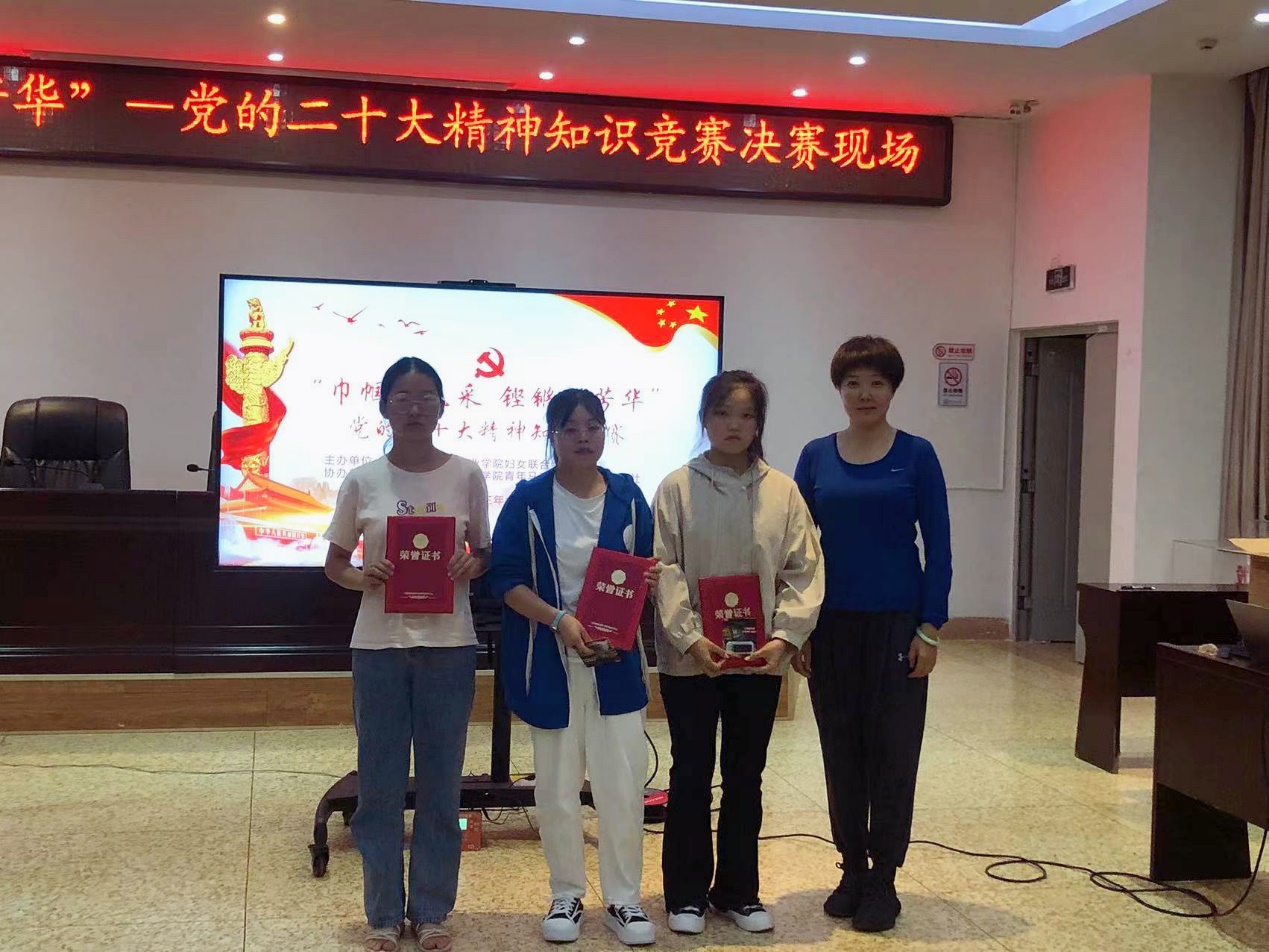 为深入学习贯彻党的二十大精神,积极营造“以赛促学、比学赶超”的浓厚学习氛围,2023年6月7日晚,由星空游戏app推荐免费妇女联合会主办,星空游戏app推荐免费青年马克思主义理论学习社协办的“巾帼展风采 铿锵绽芳华”学习党的二十大精神知识竞赛决赛在诵弦楼614-165室拉开帷幕。学院副院长、妇女联合会主席石红,副主席张靖,执委田欣平、梁媛媛出席本次活动。
