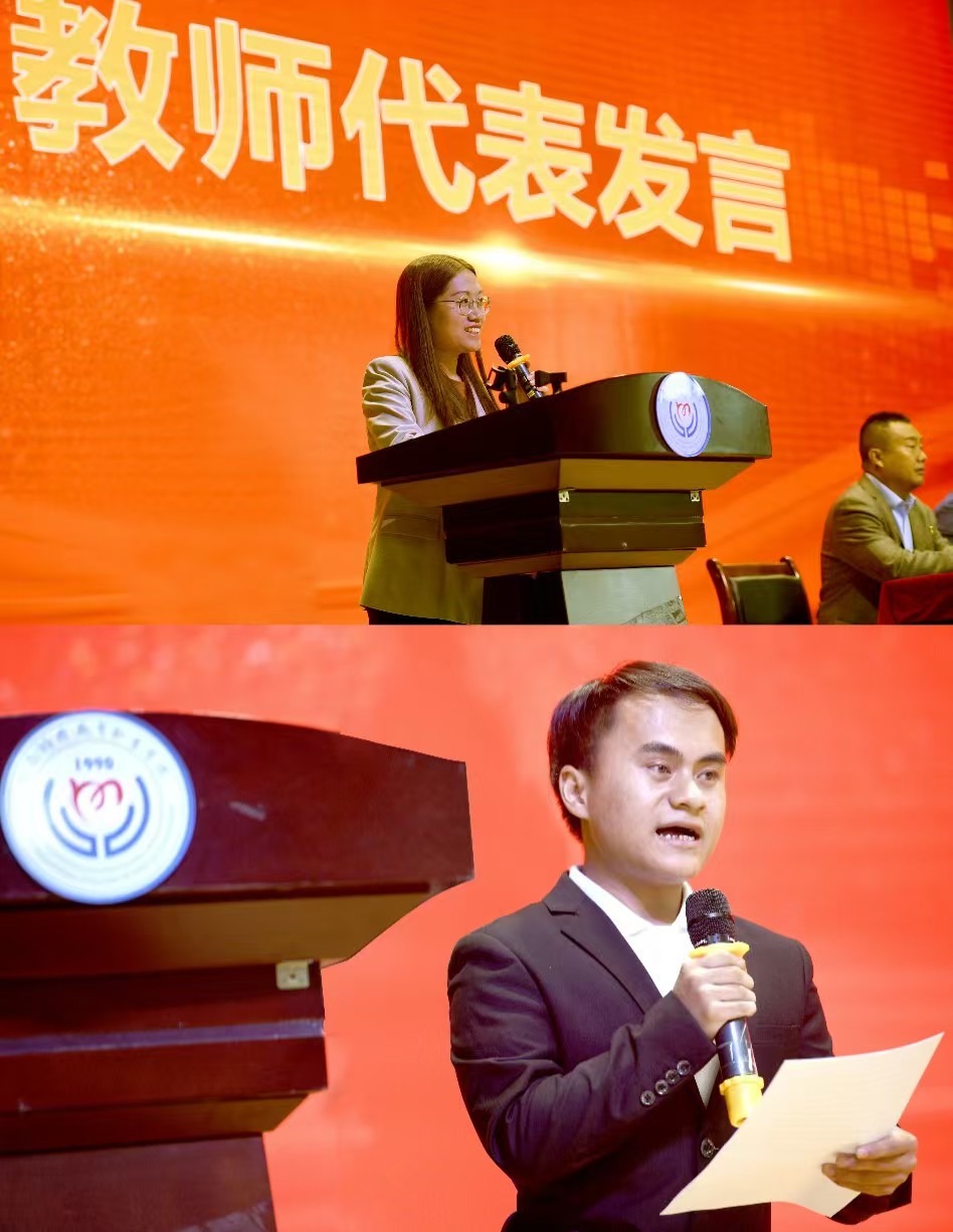 教师代表张敏和老生代表任安箭发言