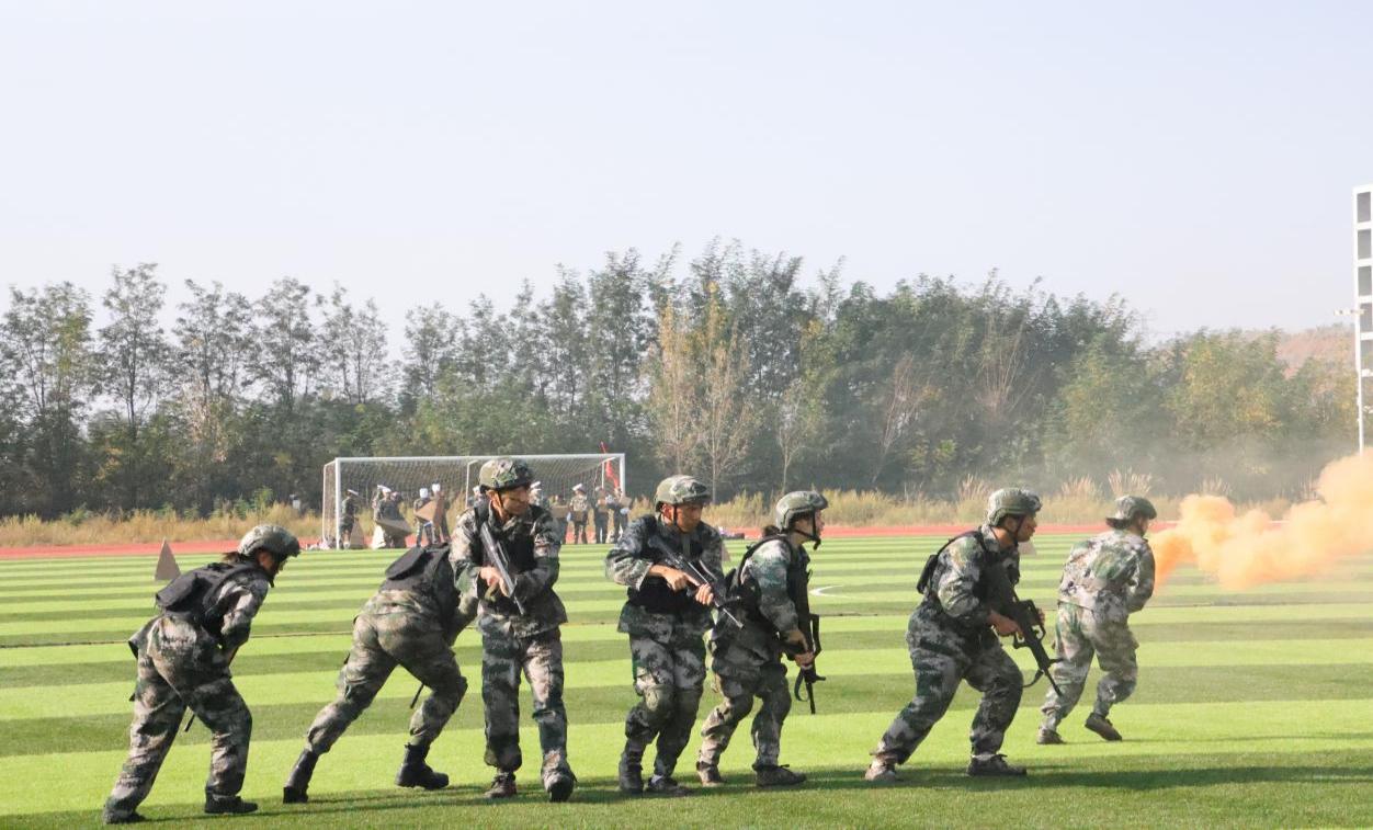 在庄严的国歌声中,军训成果展示拉开序幕。此次展示以各连队为主体,精心组织了一系列围绕军事技能训练的任务计划展示。从整齐划一、步伐铿锵的分列式开始,再到军体拳、匕首操、战场医疗救护以及战术等项目,让人眼前一亮,不仅体现了军训对于实战技能的培养,还展现了同学们在军训期间所学的战略智慧与团队协作精神。