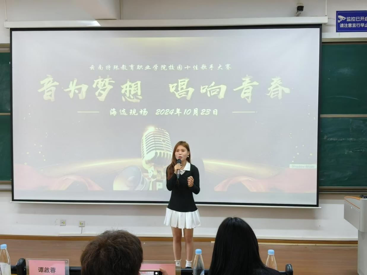 经过评选,梁峰、王宇涛、王敏、李茜茜、杜云颖、石通柔、赵艺、苏畅、刘兴钰、金海艳10位选手荣获了“2024年校园十佳歌手奖”。他们的歌声传递着青春的活力和激情,为校园文化生活增添了一抹亮色。神秘嘉宾钱粲老师凭借出色的演唱技巧和深情的演绎,荣获“最佳歌手奖”。