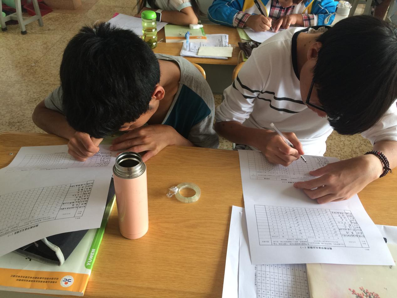 图为学生认真细致评分
