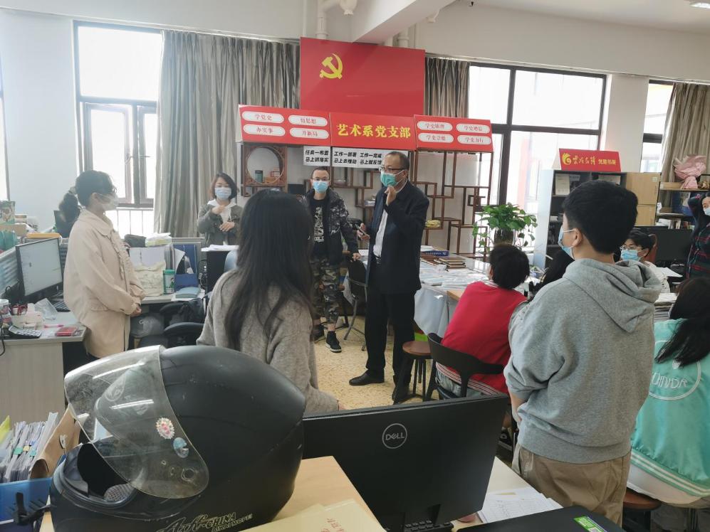 (图为孙继先到特殊教育与公共服务系督查疫情防控工作)