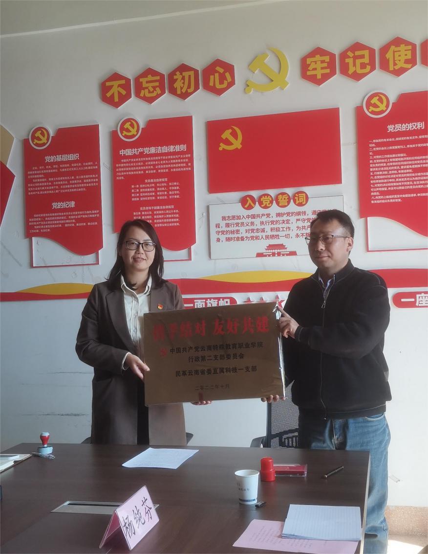 2022年10月19日下午,中共星空游戏app推荐免费行政二支部与民革云南省委直属科技一支部在星空游戏app推荐免费内开展联合共建活动,主要任务是通过支部共建,相互促进、友好合作、资源共享,充分发挥双方扶残助残的社会服务职能,为云南的特殊教育高等教育事业谱写更华丽的篇章。