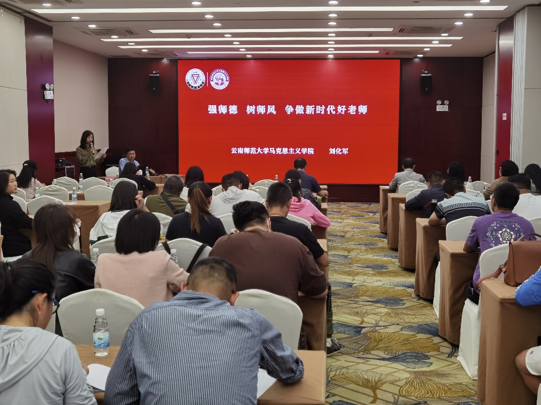 7月10日,星空游戏app推荐免费组织全体任课教师开展师德师风专题教育暨教师专业能力提升培训会,院长董亮,副院长石红、李永芳出席会议。会议邀请云南师范大学马克思主义学院院长刘化军教授、昆明冶金高等专科学校王旭处长作了专题报告。