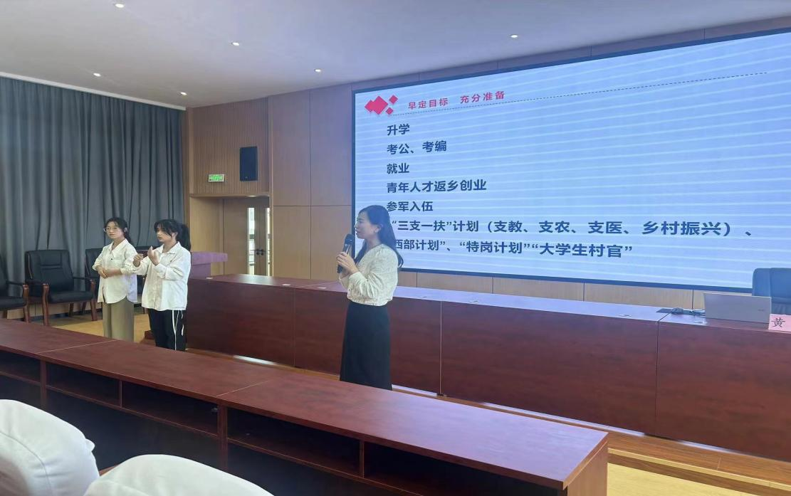为深入贯彻落实党中央、国务院“稳就业”“保就业”决策部署,加强我校毕业生就业政策宣传,积极引导我校学生深入了解就业创业政策、做好职业规划,助力学校就业工作,4月24日下午,我校就业创业政策宣传讲座在实训楼408成功举办,2022级180余名学生参加了宣讲会。