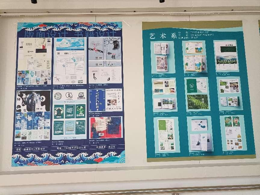 艺术设计专业的师生们展示了他们在产品包装设计、版式设计课程中的教学成果,作品稍显稚嫩,但设计新颖,构思巧妙。