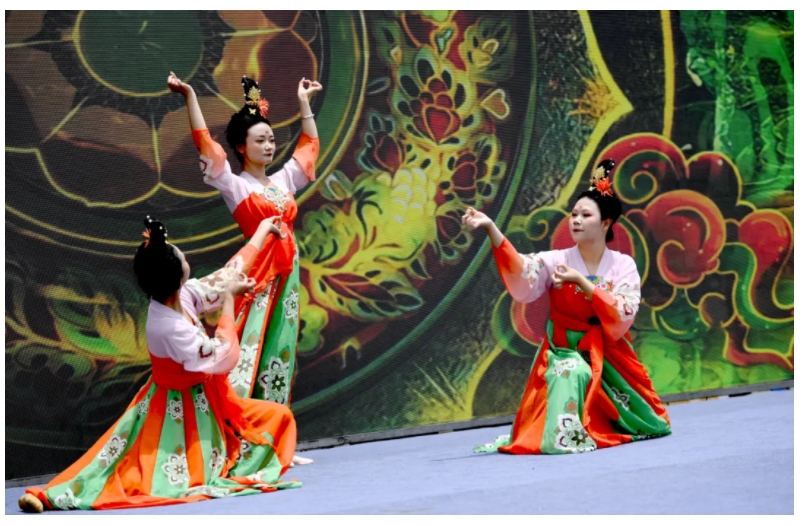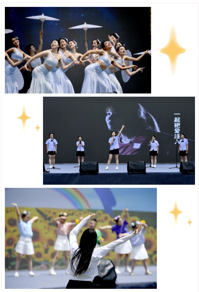 古典舞《唐印》拉开了文艺演出的序幕,舞蹈以唐三彩仕女俑为灵感,让静态的历史“活化”,展现出大唐盛世的开放与包容。《生命的摇篮》、《祖国的花朵》,以及歌曲《倾斜而美丽的世界》纷纷登台亮相,惊艳全场。