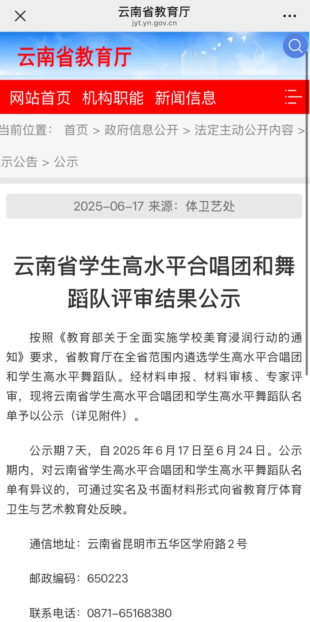 近日,为贯彻落实《教育部关于全面实施学校美育浸润行动的通知》要求,云南省教育厅在全省范围内组织开展了学生高水平合唱团和舞蹈队的遴选工作。经材料申报、材料审核、专家评审,我校艺术团舞蹈部成功入选,获评“云南省学生高水平舞蹈队”称号。