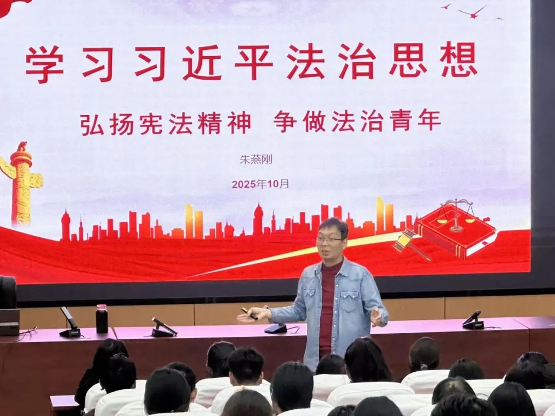 讲座倡议同学们要以习近平法治思想为指引,以宪法精神为准则,将“法”内化于心、外化于行,在学习中增长法治智慧,在实践中锤炼法治品格,在奋斗中彰显法治担当,让青春在全面建设社会主义法治国家的伟大征程中绽放绚丽之花。