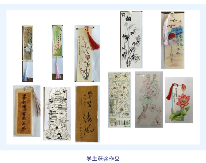 比赛启动以来,全校师生积极响应,纷纷化身创意设计者。参赛作品形式多样、风格迥异,有的以传统水墨为底色,勾勒出山水花鸟的雅致意境;有的以简约线条为骨架,诠释现代设计的灵动精巧;还有的将经典文学名句融入画面,让书签兼具颜值与内涵,每一枚书签都饱含着创作者对阅读的热爱与独特的审美思考。