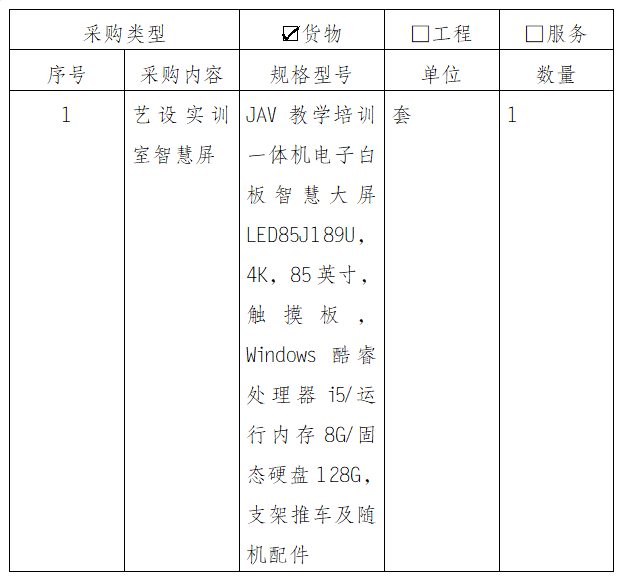 1、 项目名称:艺术设计实训室智慧屏