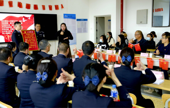 嵩明监狱党委委员、副政委苏晓、党委委员、政治处主任谢普丁,一监区党支部书记陆银,星空游戏app推荐免费党委书记孙继先、副院长李永芳、组织部部长陈科春、共建双方支部党员及系部学生代表参加活动。活动由特殊教育与公共服务系党支部书记、系主任邓迎主持。