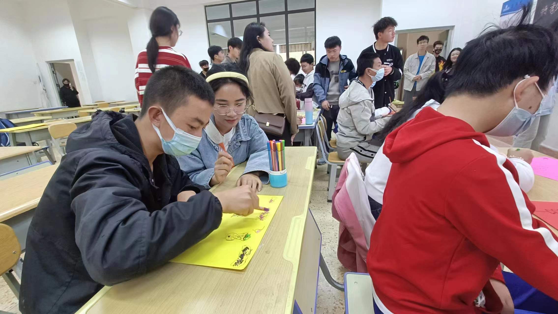 宣讲结束后,昆明医科大书画协会以及宣传部的同学带领西餐烹饪专业的孩子们围绕“为雷锋叔叔画幅画”这一主题开展绘画、写毛笔字等活动。让同学们在实践活动中更好地体会雷锋精神。