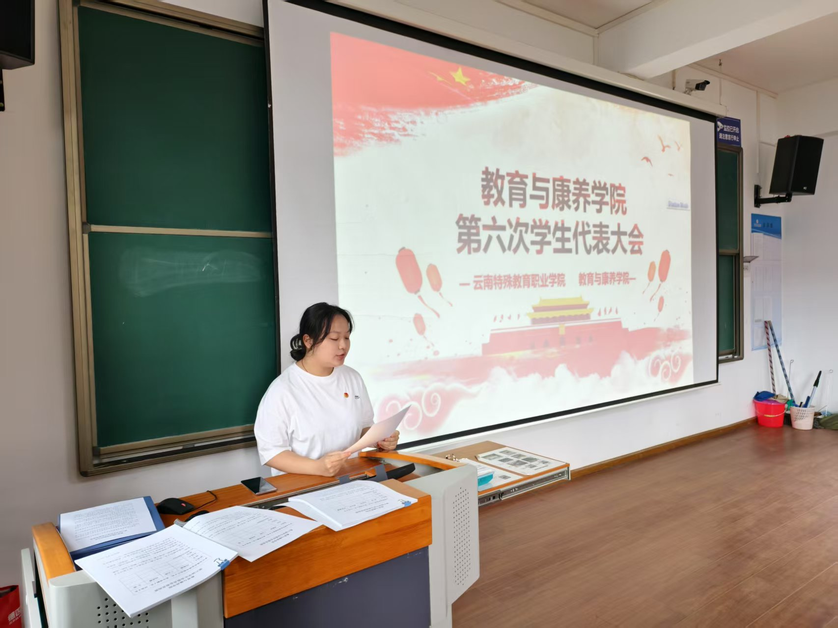 2025年6月17日,教育与康养学院第六次学生代表大会在玉璋楼310教室隆重召开。教育与康养学院团总支书记史洋及38名学生代表参会,团总支副书记刘苏霈主持会议。