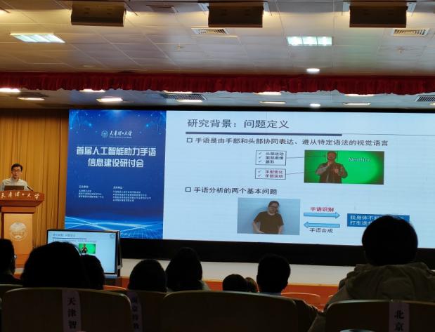 为深入贯彻落实《第二期国家手语和盲文规范化行动计划(2021-2025年)》,将人工智能手语相关学术研究与国家手语信息化建设工作紧密结合,提升手语信息化建设水平,2023年4月25日在天津理工大学召开首届人工智能助力手语信息化建设研讨会,我校邓迎老师、孟琼芳老师参加了此次研讨活动。
