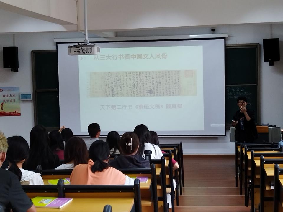 活动中,刘铎老师从汉字的起源出发,讲述了书体衍变、经典书法作品赏析、书法文化在当下的意义等,汉字是世界上起源最早的文字之一,数千年来,中华民族在传承文明的过程中,创造了篆、隶、楷、行、章草、今草等形式多样的书体,书法始终与中国哲学、传统文化精神保持着紧密联系,最后,刘铎老师结合日常生活,强调了练习书法可以涵养品格、提升审美、润化心灵。