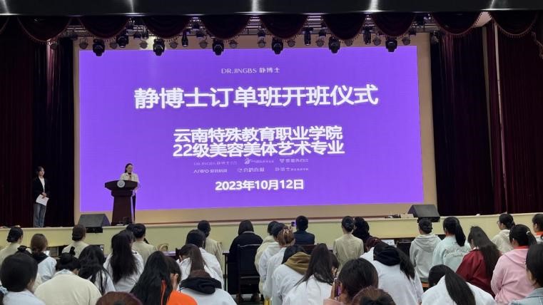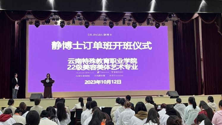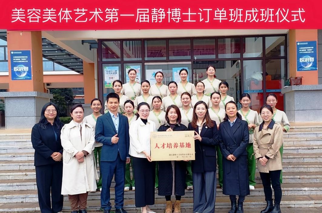 10 月13日上午,我校美容美体艺术专业与浙江静博士美容科技有限公司首届“静博士”订单班成班仪式在学院礼堂举行,艺术系主任兼党支部书记张丽莉、浙江静博士美容科技有限公司人才服务中心教研室主任叶淑萍、校企合作部负责人董俊、美容美体艺术专业师生参加了本次成班仪式。